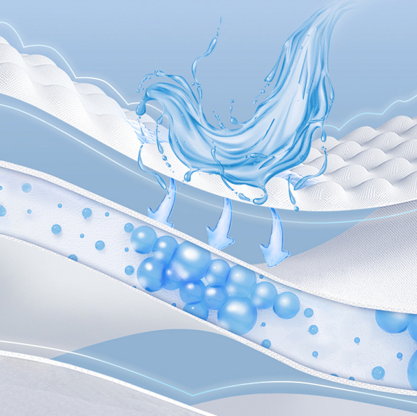 Lock-Water Core Layer: Combines high-performance absorbent materials to capture a significant amount of liquid and lock it in effectively.